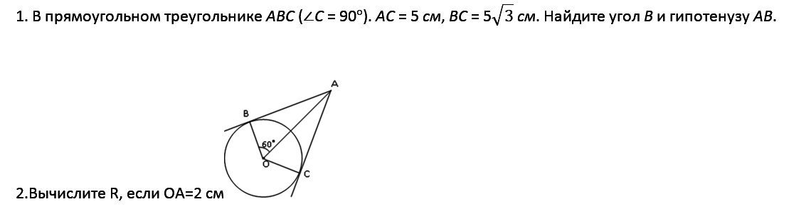 * * *радиус(здесь (OB) перпендикулярен касательной(здесьAB) в точке касания (здесь B)* * *