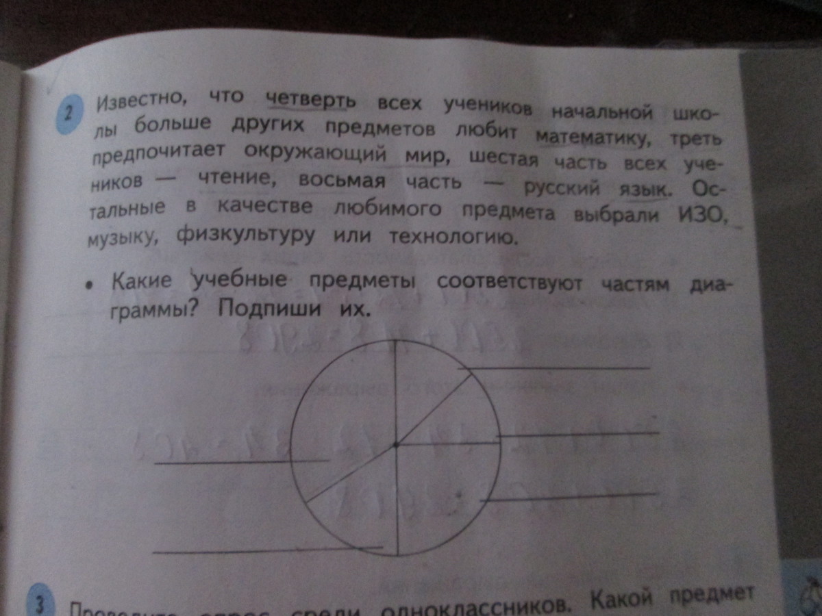 учеников-чтение, восьмая часть русский язык. Остальные в качестве любимого предмета выбрали ИЗО, музыку, физкультуру или технологию.