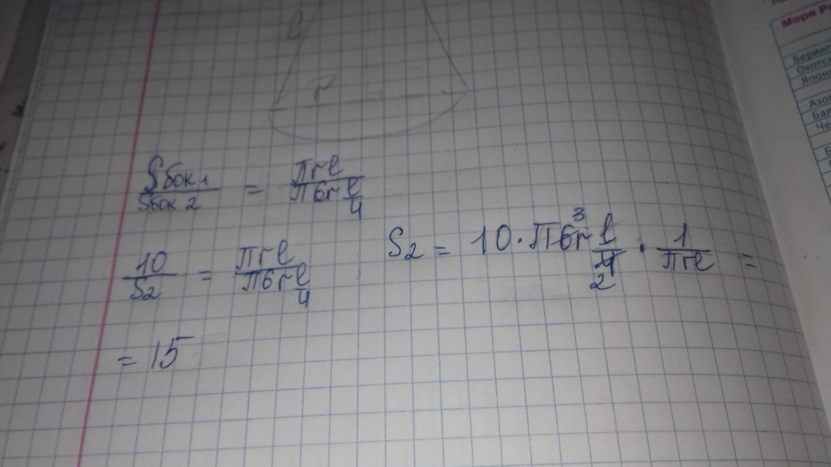 по формуле для нахождения Sбок. составим пропорцию, со всеми данными. которые мы имеем: