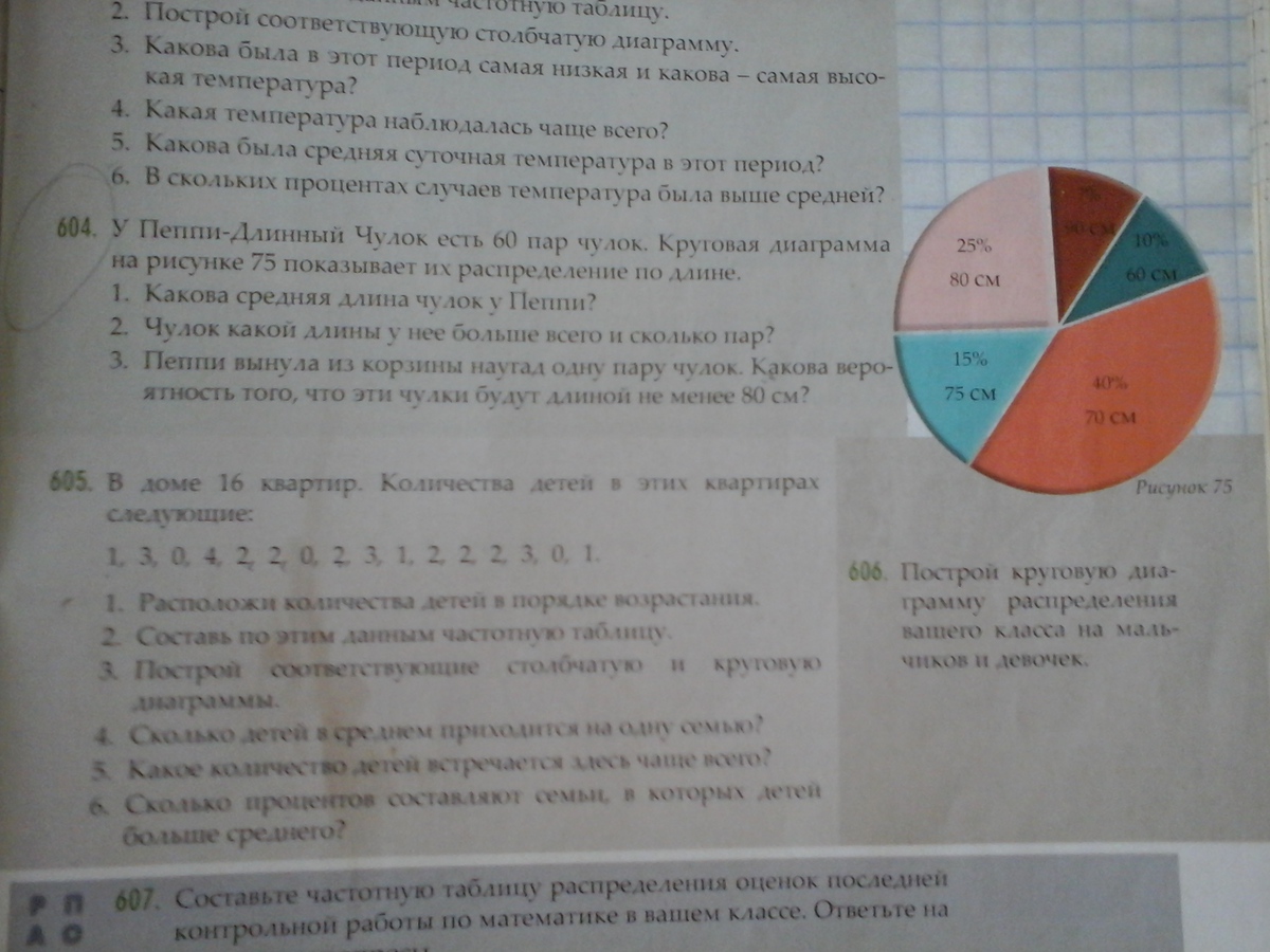 1.Средняя длина по диаграмме 70+75+60+90+80=375 375/5=75 см -средняя длина