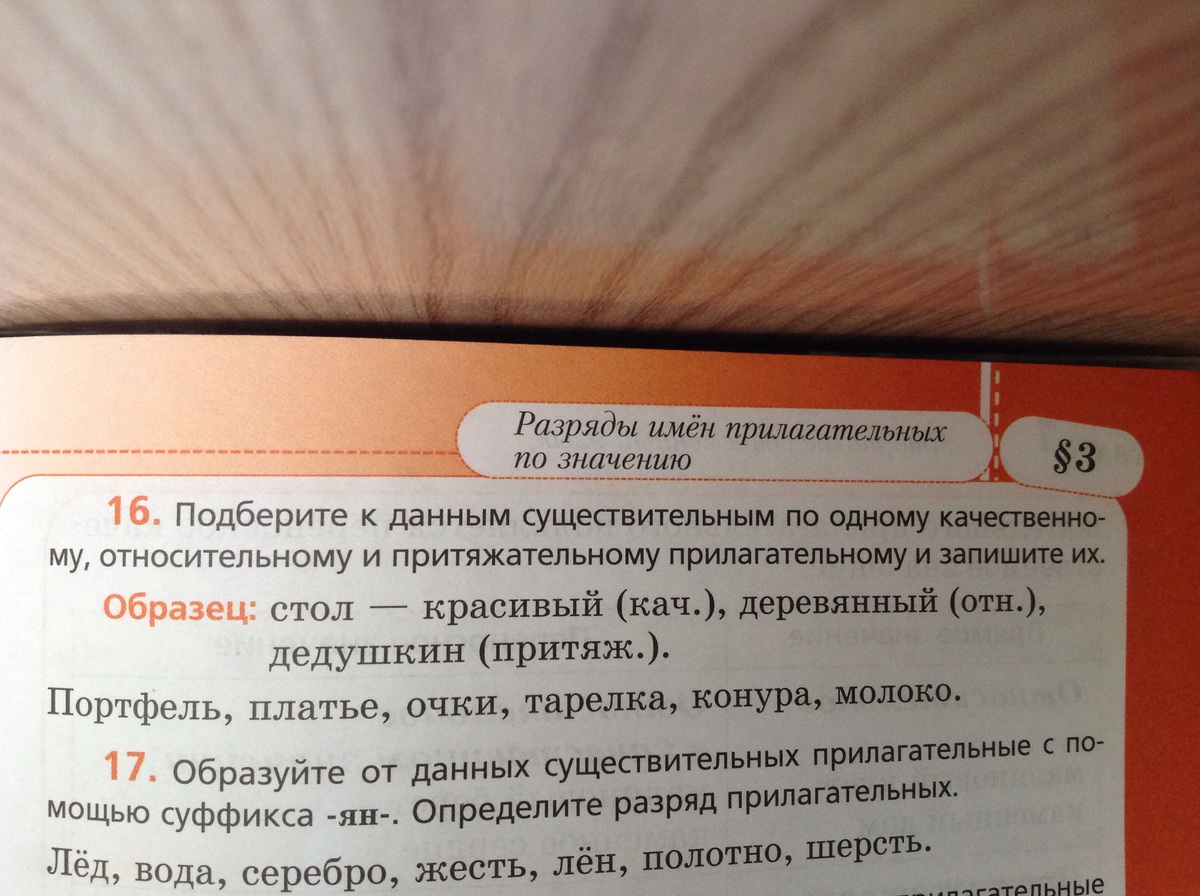 тарелка - старая (кач), фарфоровая (отн), дедушкина (притяж)