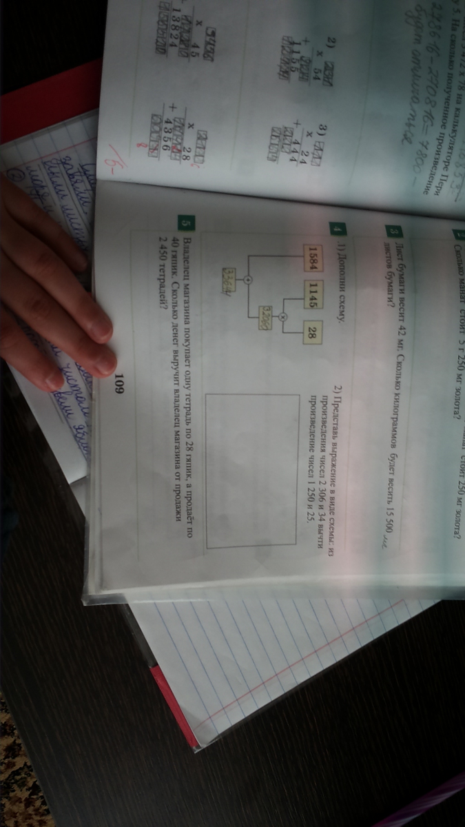 2450*28=61250(потраченное на покупку) 2450*40=98000(продажа тетрадей) 98000-61250=36750(выручил денег)