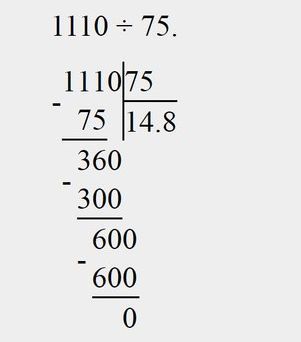 Для того чтобы выполнить деление в столбик преобразуем 7.5 в целое число. Для этого умножим делимое 111 и делитель 7.5 на 10.