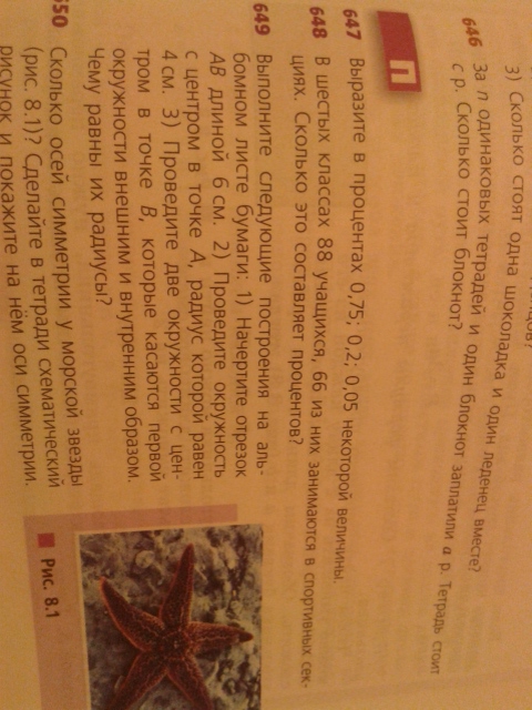 В шестых классах 88 учащихся, 66 из них занимаются в спортивных секциях. Сколько это состовляет процентов?#648 на картинке