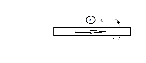 Пучок электронов движется параллельно проводнику, по которому слева на право проходит ток. В какую сторону отклонится пучок?