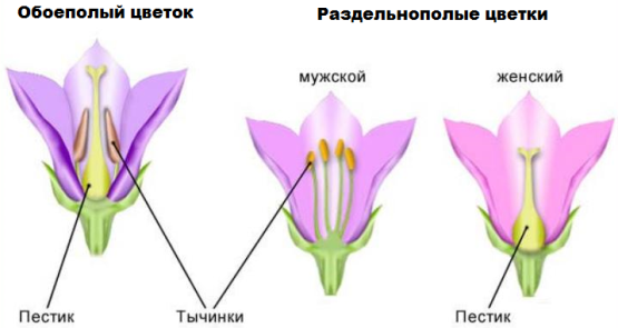 Женская клетка цветка-это пестик. А мужская-тычинки.