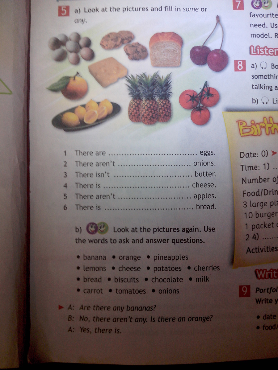 look at the pictures again. Use the words to ask and answer questions. banana....... помогите пожалуйста!!! Подобное задание уже было, но там не было картинки