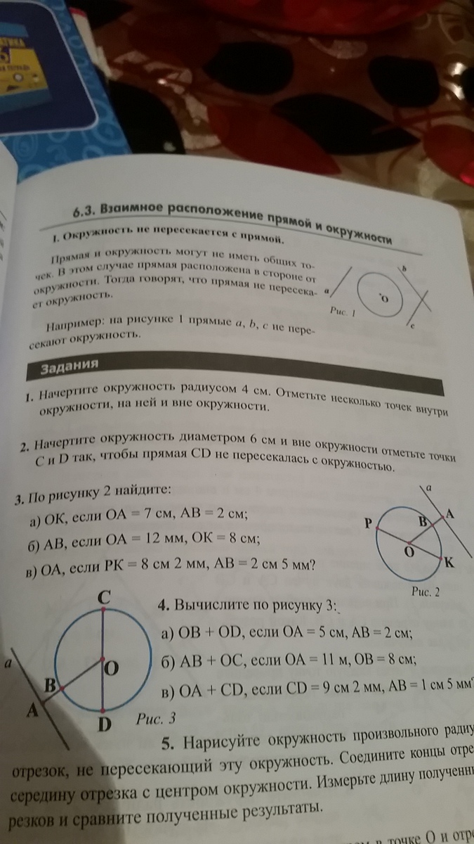 Рисуешь окружность. Проводишь вертикальный диаметр. Откладываешь где подальше прямую параллельную этому диаметру и отмечаешь точки на ней.