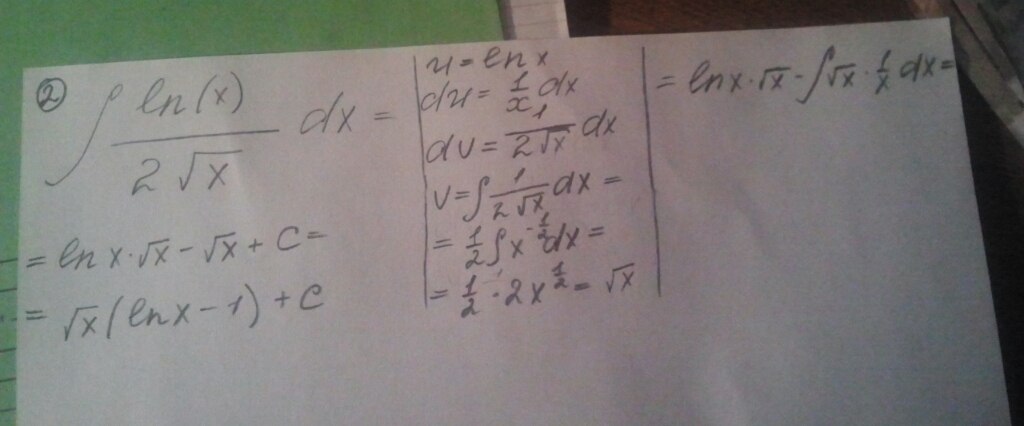 Ln(x)/(2*sqrt(x))dx Найти неопределенный интеграл. Во влажении есть решение, но не знаю правильное или нет