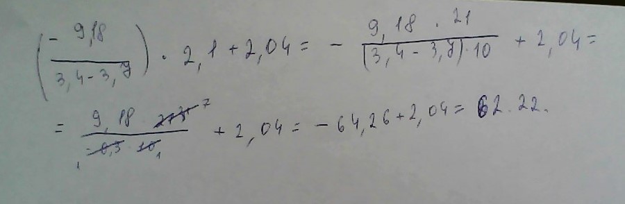 ( -9,18 / 3,4 - 3,7 ) * 2,1 + 2,04 = -11,4