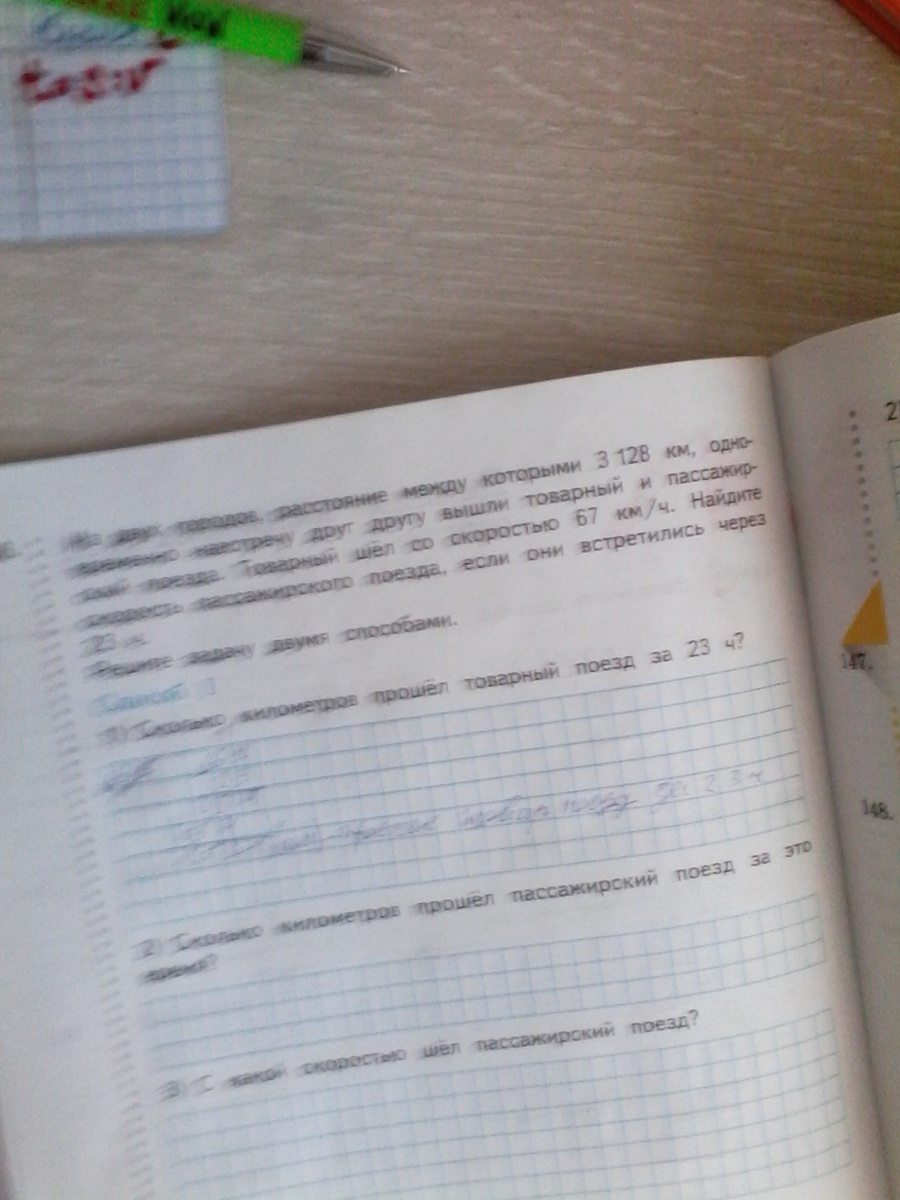 2) 3128-67*23=1587(км)-прошел пассажирский