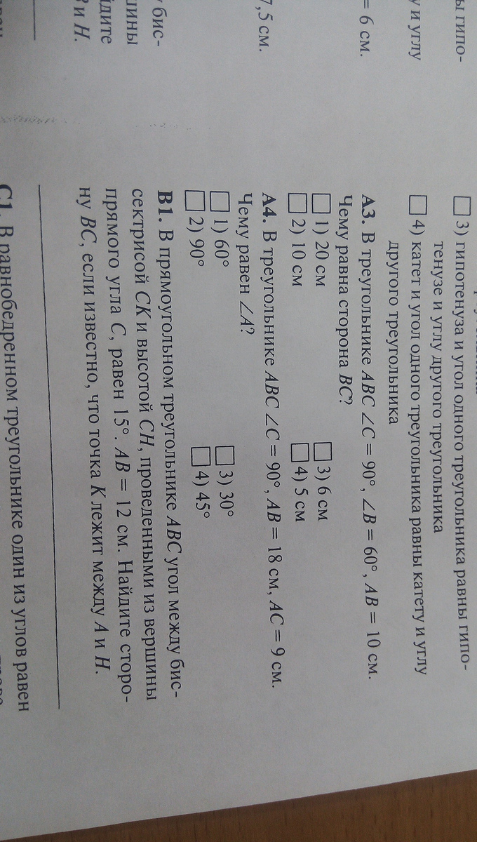 биссектрисса делит угол пополам, на 45 гр, -15 , получаем что угол В=60гр