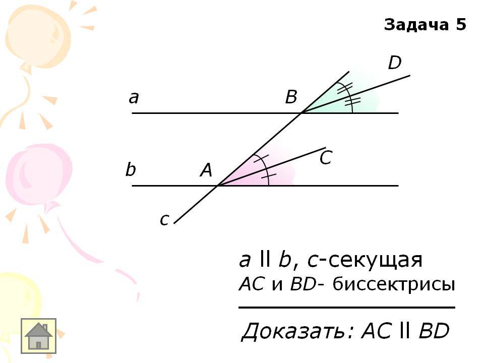 Есть такое свойство : Если две параллельные линии пересечены секущей, то накрест лежащие углы рачны