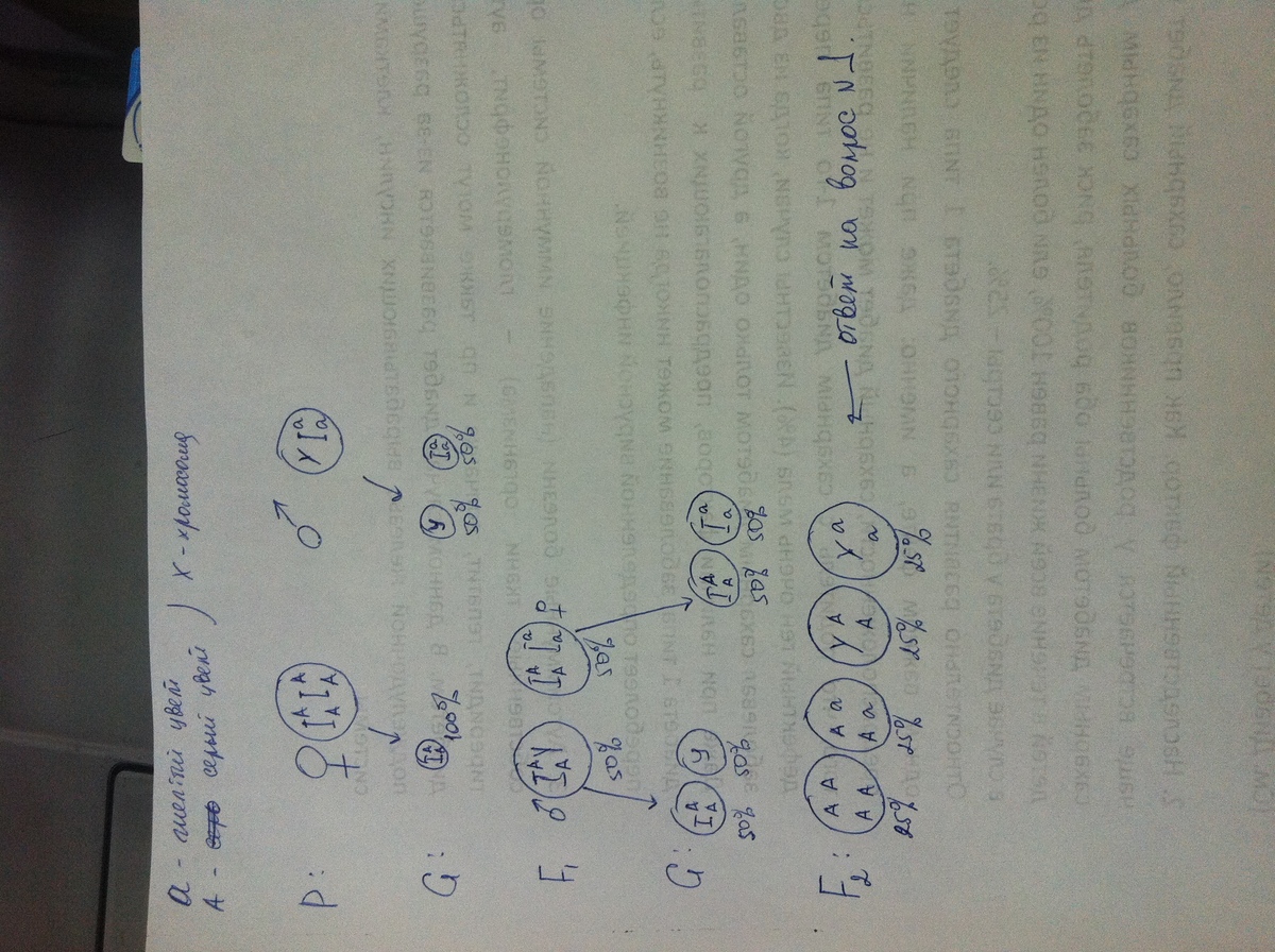 1) У дрозофіли рецесивний ген жовтого забарвлення тіла міститься в Х-хромосомі. Від схрещування гомозиготної сірої самки та жовтого самця одержали сіре потомство. Якими будуть дрозофіли в F2 від схрещування сірої самки з F1 та сірого самця в F1.