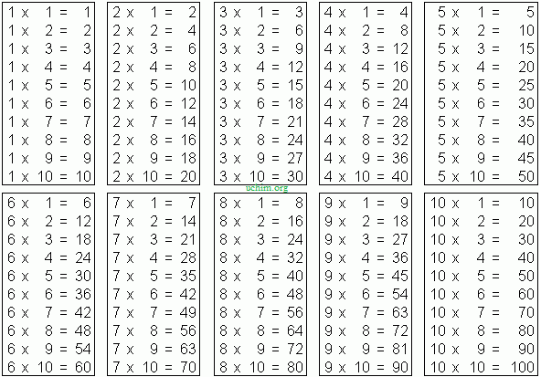 Вот таблица,можно просто в картинках поисковиков найти