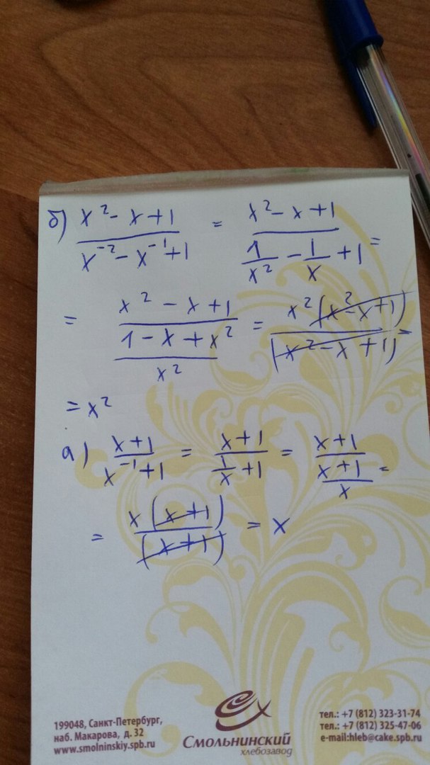 Помогите, умоляю! Упростить: а) х+1/ х ^-1+1 б) х^2-х+1/ х^-2-х^-1+1 под а) должно получиться х, а под б) х^2