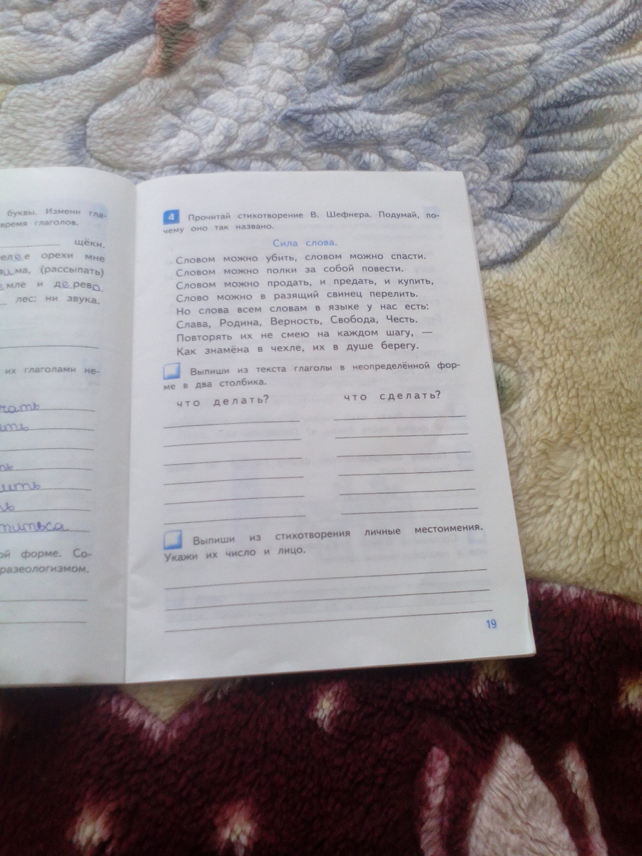 прочитай стихотворения В.Шефнера. подумай почему оно так названо. Выпиши из текста глаголы в неопределённой форме в два столбика