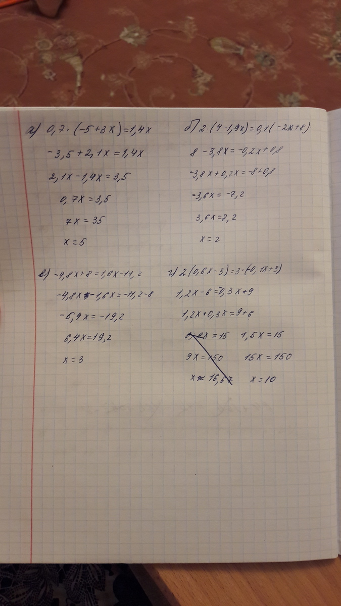 г)2*(0,6x-3)=3*(-0,1x+3)