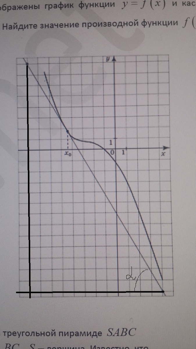 На рисунке изображены график функции у = f ( × ) и касательная к нему в точке с абсциссой Хо. Найдите значение производной функции f ( × ) в точке Хо.
