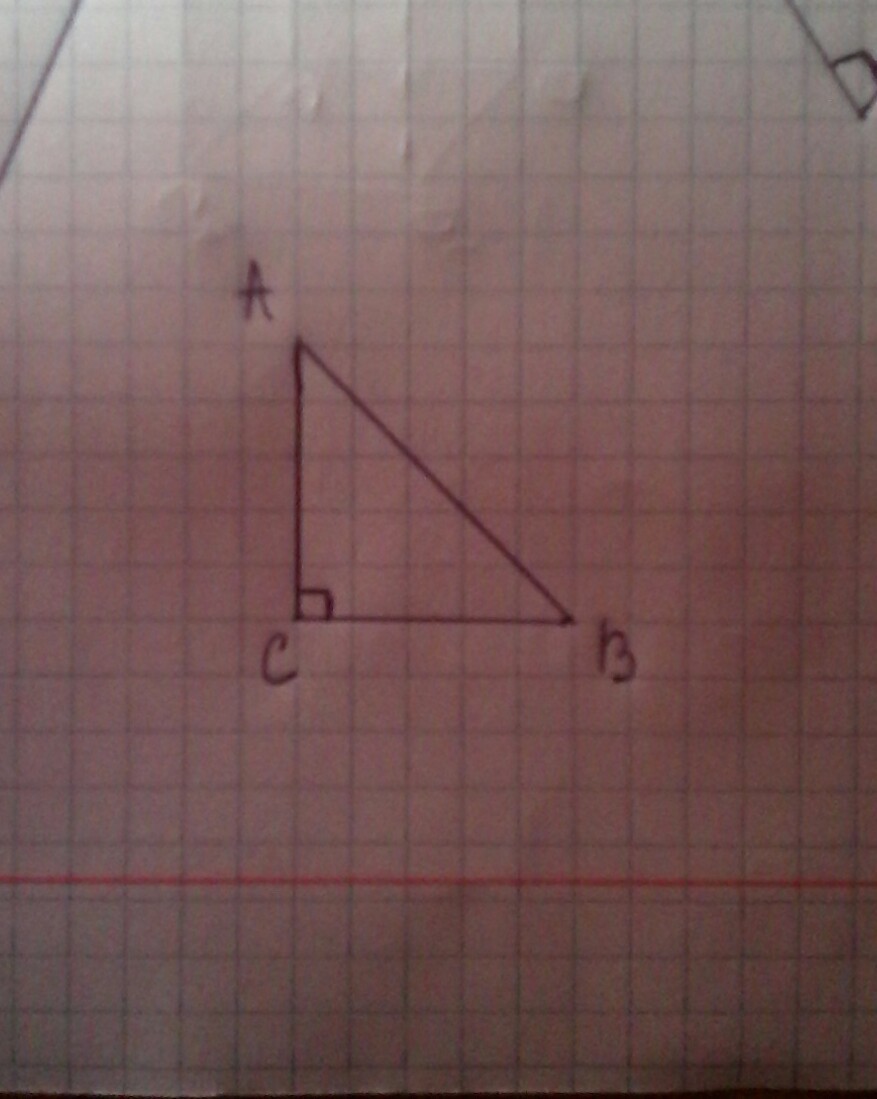 Прямой угол АCB = 90°. Этот треугольник является равнобедренным, т.к. углы CAB и CBA равны 45°