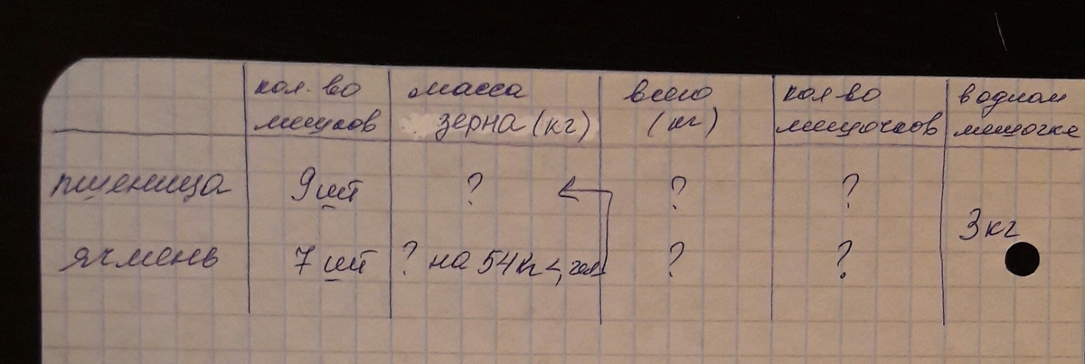 пожалуйста толька краткая запесь спасибо в амбаре хранилось 9 мешков пшеницы и 7 мешков ячменя с одинаковой массой зерна в каждом мешке. Ячменя было на 54