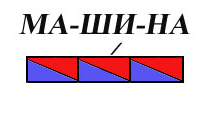 три слога,каждый представляет из себя слияние согласного (твёрдого,синий цвет) с гласным (красный цвет)