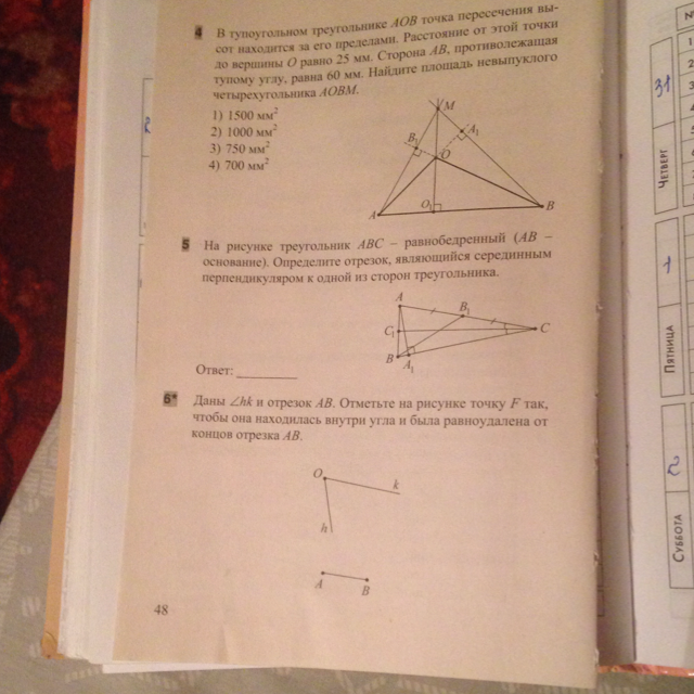 Тогда площадь заданного четырёхугольника равна разности площадей треугольников АМВ и АОВ.
