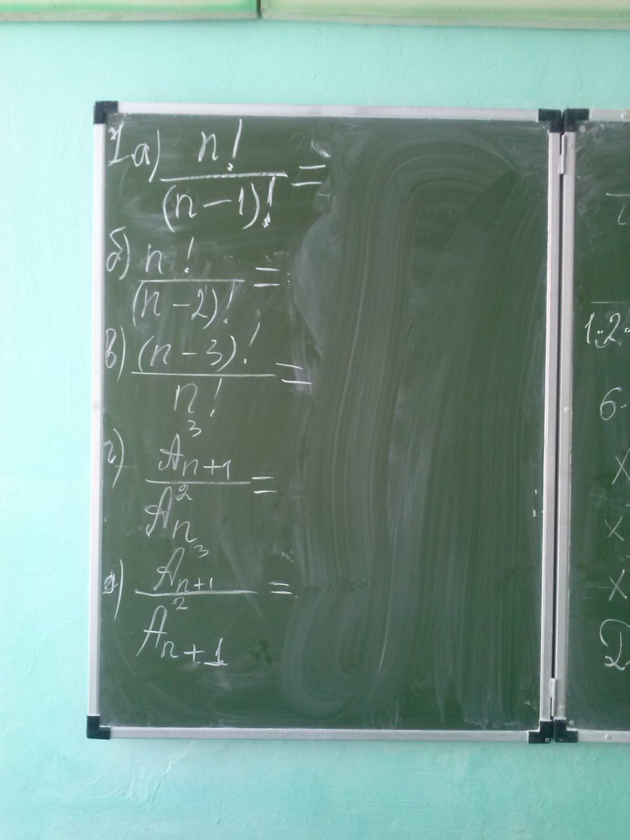 1)  a) frac{n!}{(n-1)!} = frac{1*2*...*(n-1)*n}{1*2*...*(n-1)} = n\\ b)  frac{n!}{(n-2)!} = frac{1*2*...*(n-3)*(n-2)*(n-1)*n}{1*2*...*(n-3)*(n-2)} = (n-1)*n\\ c)  frac{(n-3)!}{n!} = frac{1*2*...*(n-3)}{1*2*...*(n-3)*(n-2)*(n-1)*n} = frac{1}{(n-2)*(n-1)*n}\\
