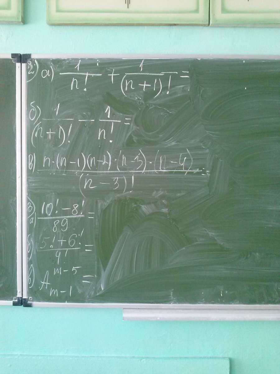3)  a)  frac{10! - 8!}{89} = frac{8!(9*10 -1)}{89} = 8! = 40320\\ b)  frac{5! + 6!}{4!} = frac{4!(5 +5*6)}{4!} = 35\\ c)  A^{m-5}_{m-1} = frac{(m-1)!}{(m-1-m+5)!} = frac{(m-1)!}{4!} = frac{(m-1)!}{24} \\