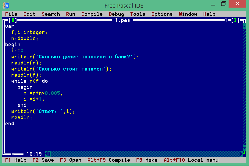 Миша положил n рублей в банк, каждый месяц банк начисляет 0,5%. Через сколько месяцев у Миши будет f рублей на покупку мобильного телефона?