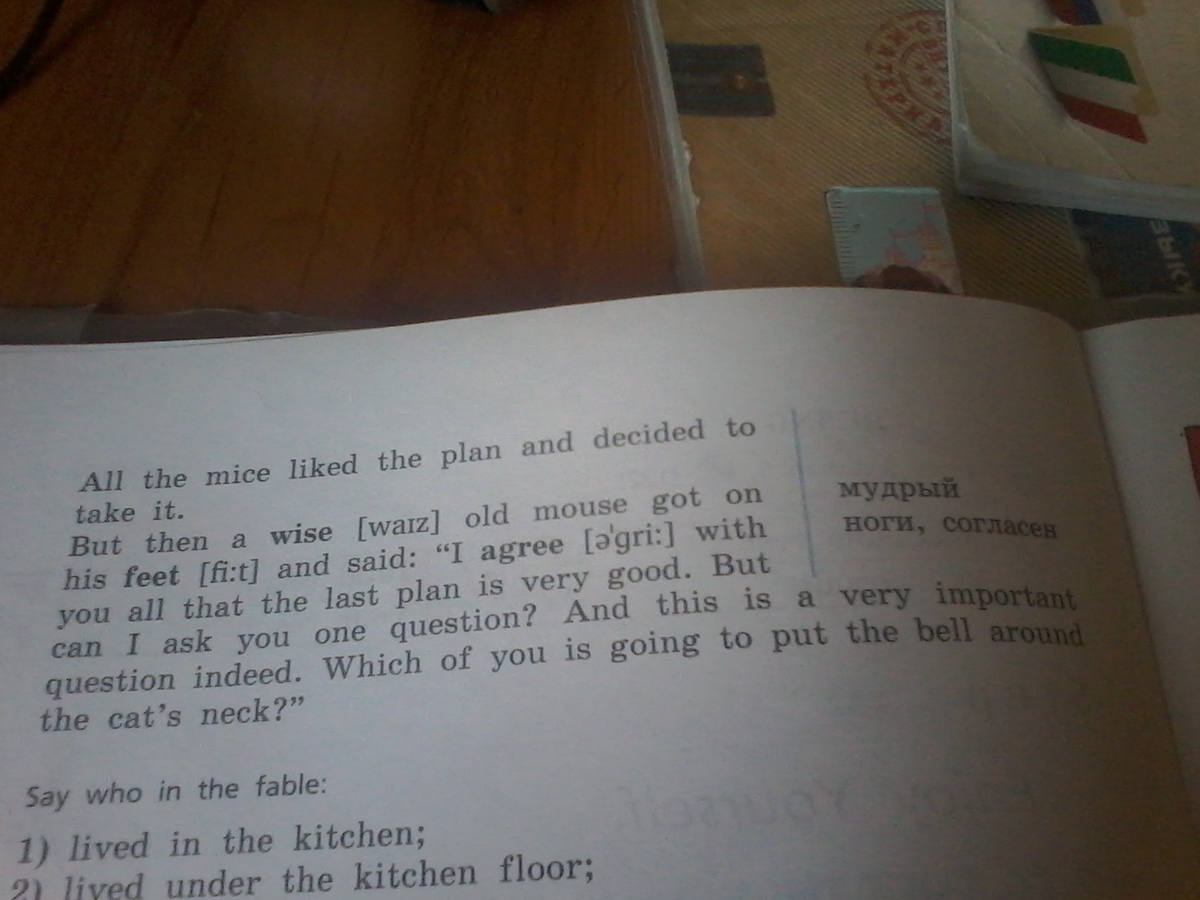 Всем мышам понравился план и они решили его использовать. Но старая мудрая мышь встала и сказала Мне нравится ваш план, но я задам один вопрос и этот вопрос на самом деле из-за вас?