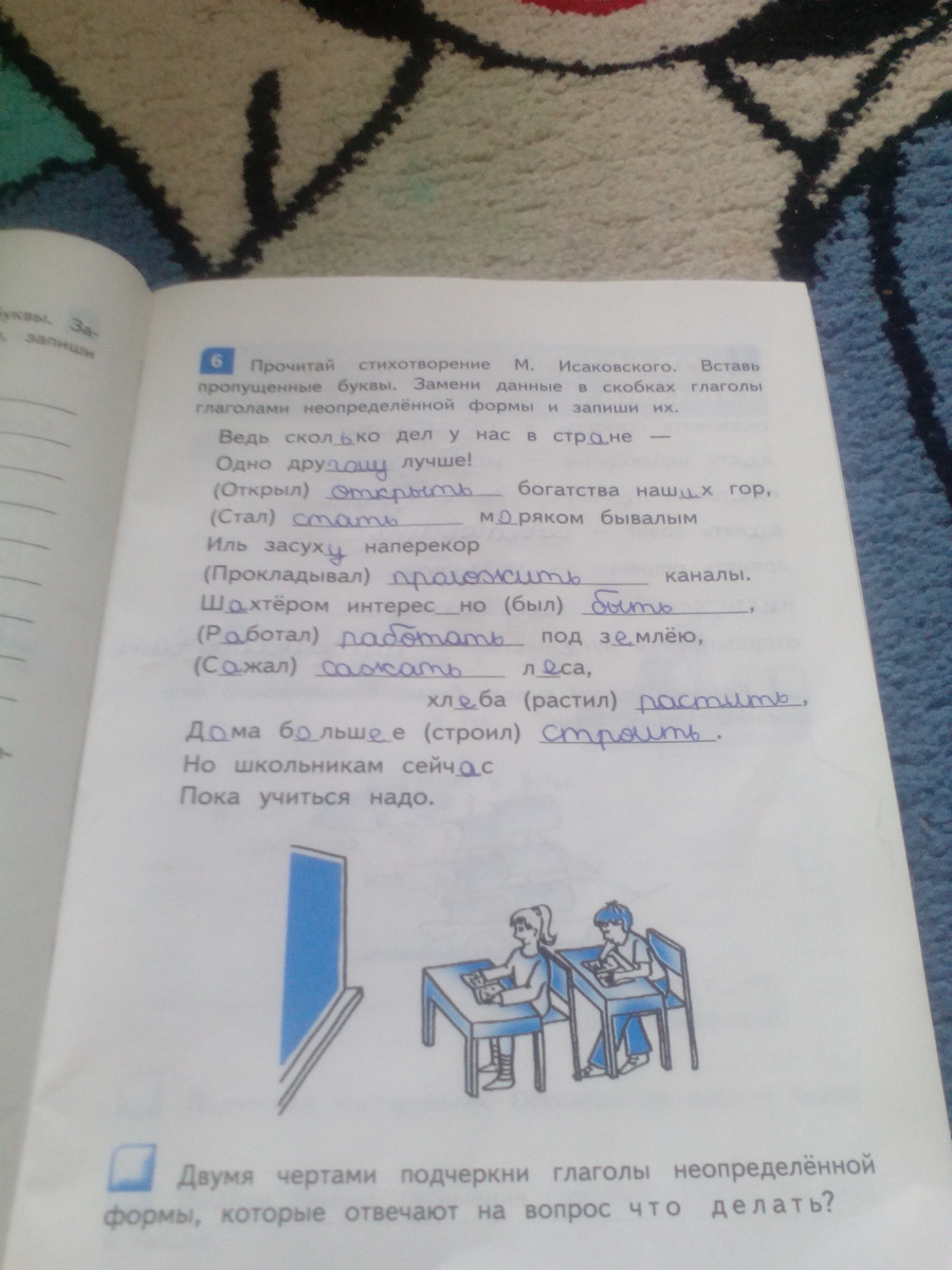 двумя чертами подчеркни глаголы неопределённой формы которые отвечают на вопрос что делать?