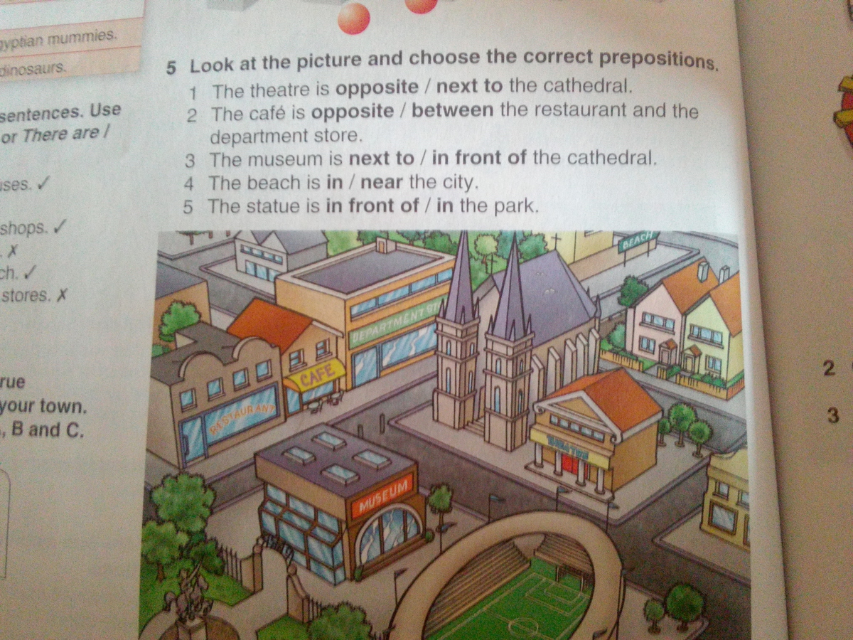 3.in front of (перед собором)