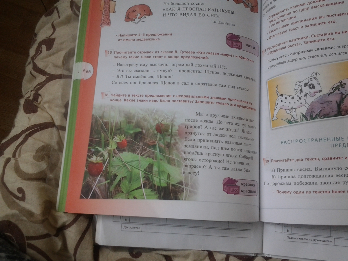 1)До чего же тут много грибов! 2)А где же ягоды? 3)Не топчи их напрасно! 4)А ты сам давно был в лесу?