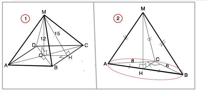Обозначим пирамиду МАВСD, МО - высота, МН - апофема ( высота боковой грани).