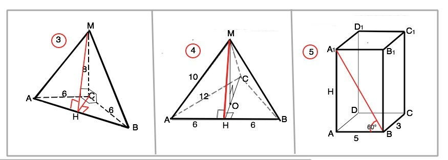 1. В правильной четырёхугольной пирамиде высота равна 12см, апофема-15см. Найдите боковое ребро. 2. Основание пирамиды-прямоугольный треугольник с катетами 6см и 8см. Боковые рёбра равны, высота пирамиды равна гипотенузе. Найдите боковое ребро. 3. Три смежных ребра треугольной пирамиды попарно перпендикулярны и равны 6см, 6см и 8см. Найти площадь полной поверхности пирамиды. 4. В правильной треугольной пирамиде боковое ребро равно 10см, сторона основания 12см. Найти площадь полной поверхности пирамиды. 5. стороны основания прямоугольного параллелепипеде 3см и 5см, большая из диагоналей его боковых граней образует с плоскостью основания угол 60*(градусов). Найти площадь полной поверхности параллелепипеда.