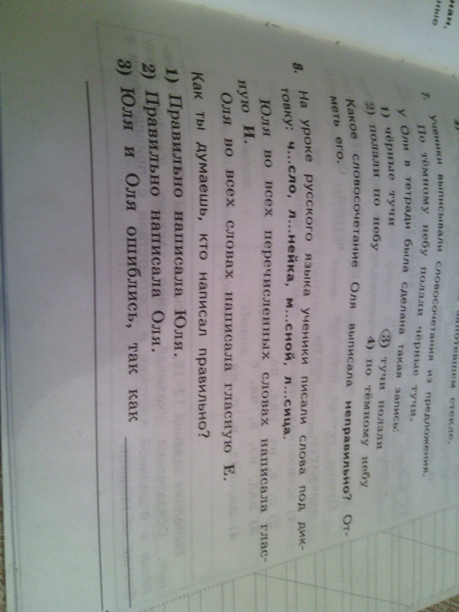 3) Юля и Оля ошиблись, так как мясной пишется с буквой я.
