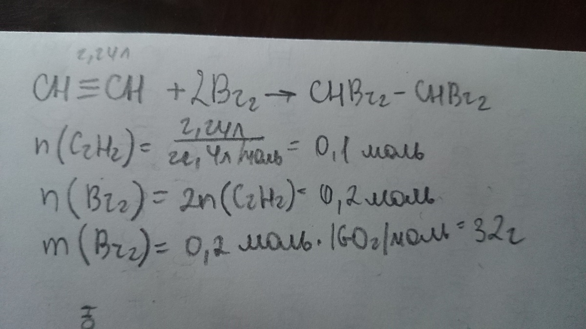 Ацетилен может присоединить 2 молекулы брома, то есть 32 г