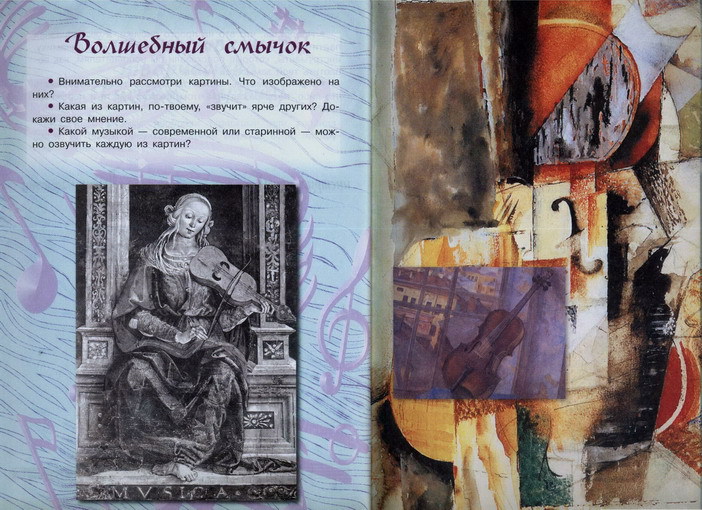 На второй картине художник изобразил собственное видение скрипки. Один и тот же инструмент, но каждый раз выглядит по-разному. Так же как и музыка, сыгранная на ней.