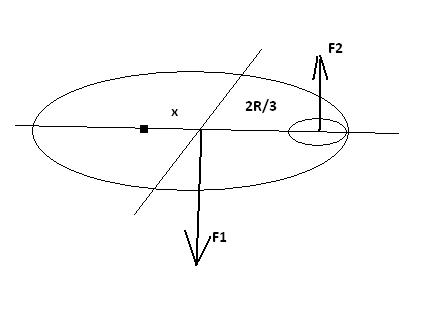Рисуем пластинку и отмечаем на ней точку, где предположительно будет ц.т. Расстояние до нее измеряем от центра большой окружности.