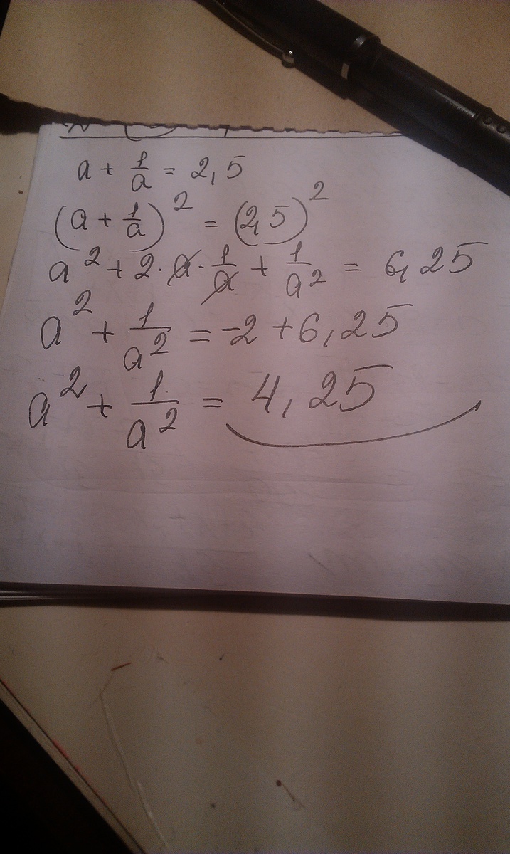 a+ frac{1}{a} = 2.5 , то вычислите значение  a^{2} +  frac{1}{ a^{2}}