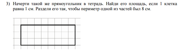 Начерти такой же прямоугольник в тетрадь. Найди его площадь, если 1 клетка