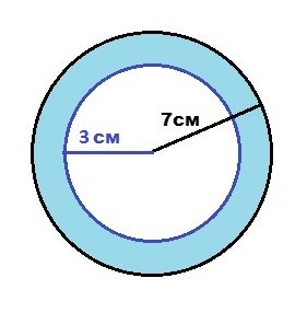 S = S₁ - S₂ = πR₁² - πR₂² = π(7² - 3²) = 40π см²