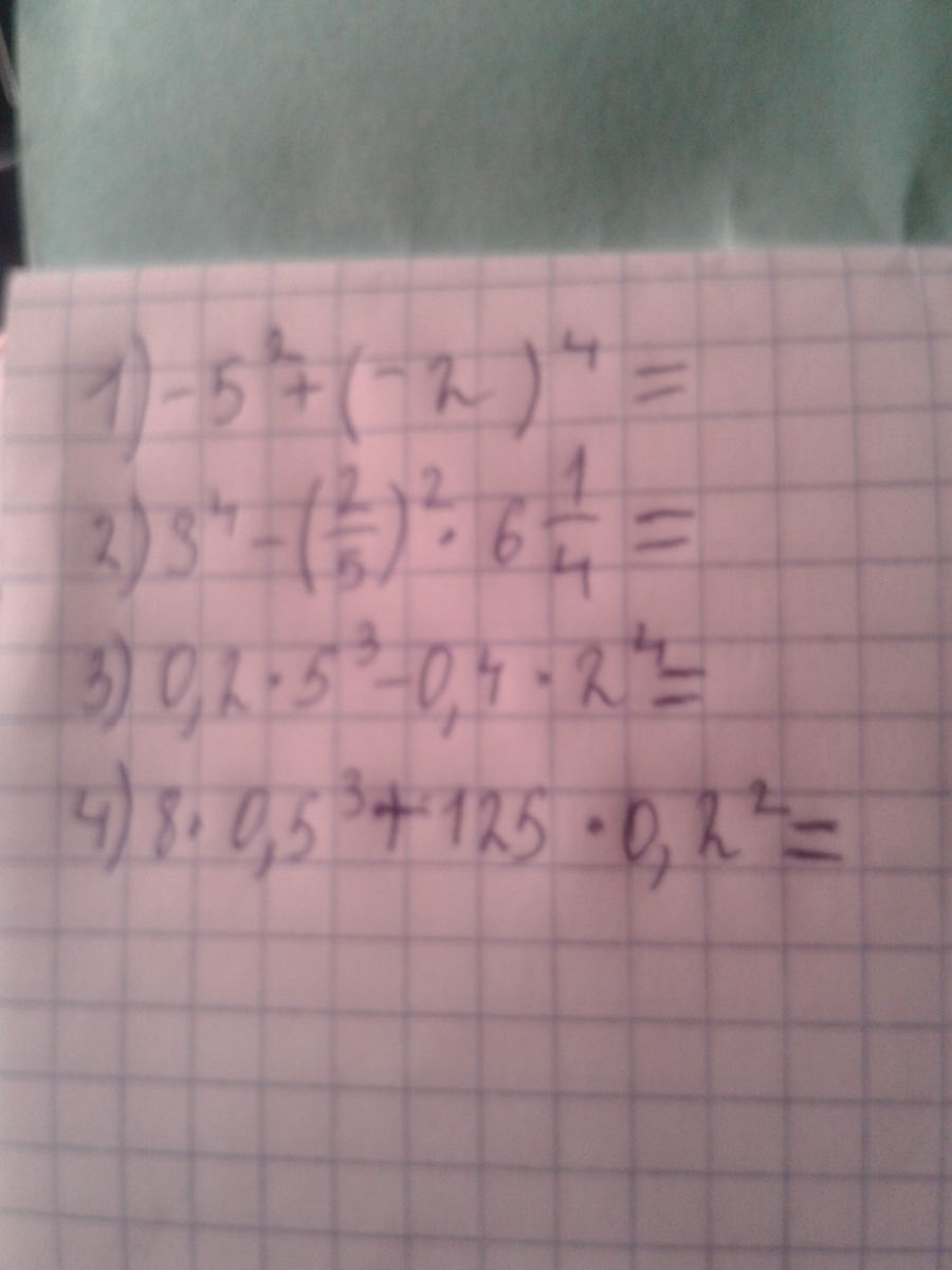 3) 0,2*5³-0,4*2⁴ = 0,2*125-0,4*16 = 25-6,4 = 18,6.
