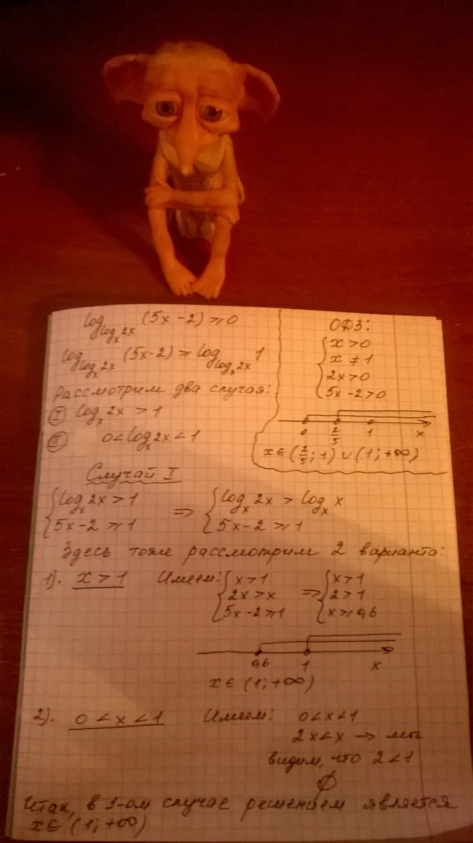 2x>x=> 2>1 (поделили обе части неравенства на Х - имели право, т.к. по ОДЗ x>0)