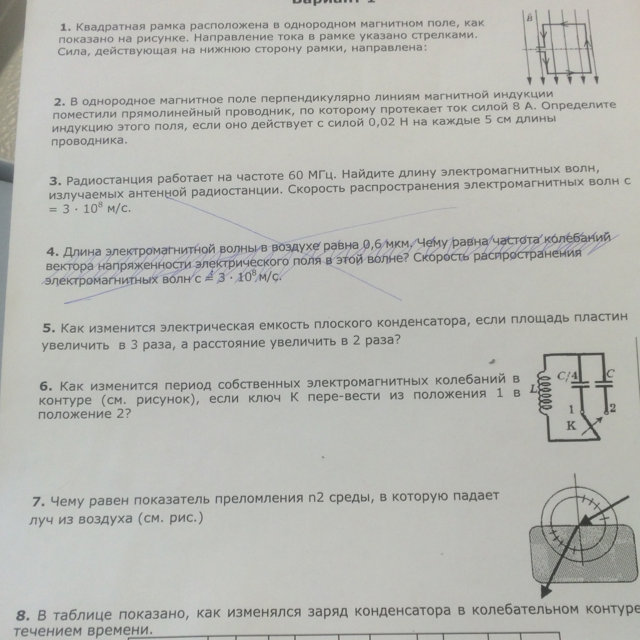 2) B=F/(I*L)=0.02/(8*0.05)=0.05 Тл