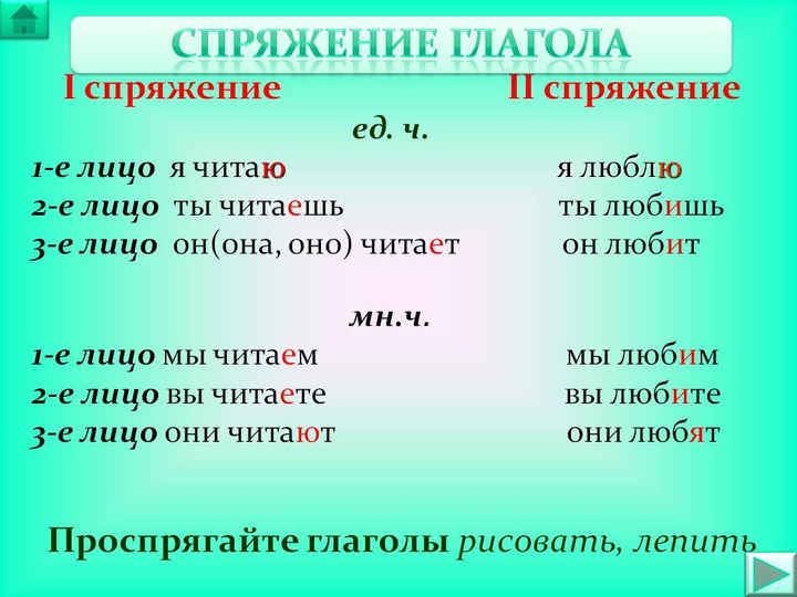 1-е лицо - (я) читаЮ