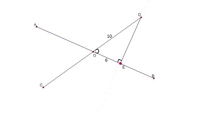 Из точки D на отрезок ОВ опущен перпендикуляр DE(Е пересекается с ОВ), ОЕ=6 см. Найдите угол DOE.