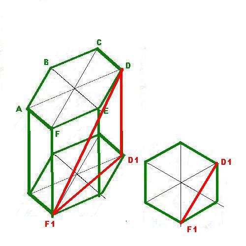 В правильной шестиугольной призме ABCDEFA1B1C1D1E1F1 все ребра равны 14. Найдите расстояние между точками D и F1