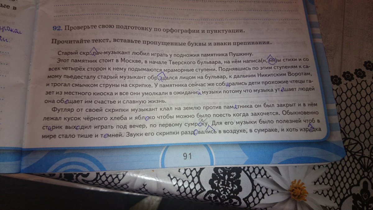 Футляр со своей скрипки музыкант клал на землю против памЯтника, он был закрыт, и в нем лежал кусок черного хлеба и яблОко, чтобы можно было поесть, когда захочется. Обыкновенно стАрик выхОдил играть под вечер, по первому сумрАку. Для его музыки было полезней, чтоб в мире стало тише и тЕмней.Звуки его скрипки раздАвались в воздухе, в сумраке, и хоть изрЕдка они доходили до глубины человеческого сердца, трогая его нежной и мужественной силой, увлекавшей жить высшей, прекрасной жизнью.